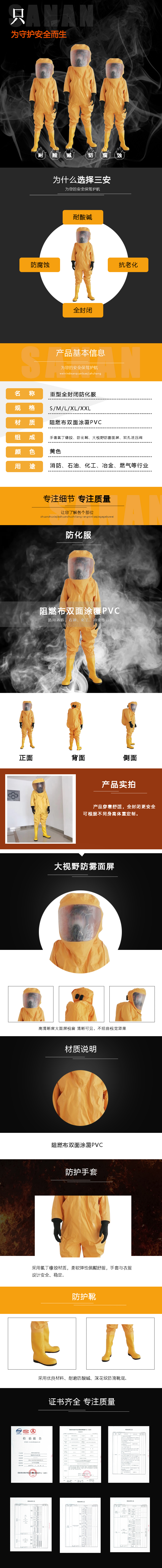 0531-66586878●首先按正壓式消防空氣呼吸器說明書要求佩戴空氣呼吸器。 ●將防化服密封拉鏈拉開,先伸入右腳,再伸入左腳,將防化服拉至半腰,然后將背囊罩上空氣呼吸器。 ●將供給閥的快速接頭插入正壓式消防空氣呼吸器的插座上,打開氣